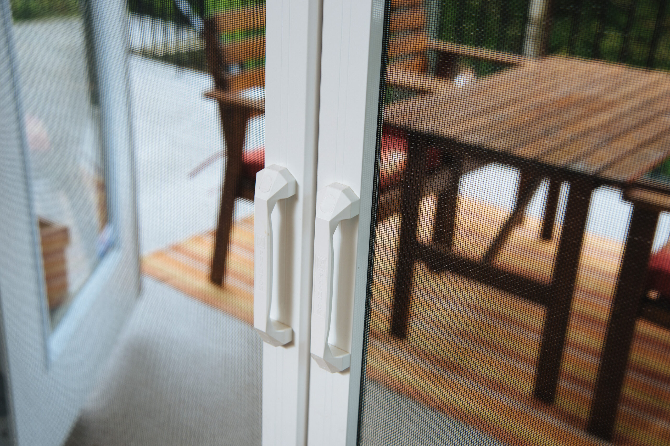 Phantom door screens disappear completely into a sleek housing when not in use, maintaining an unobstructed view.
