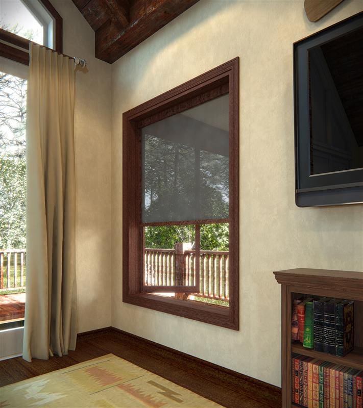 A tighter mesh on Phantoms’ motorized screens keeps the sun and heat off your space. Avoid the sun glare on electronics, fading from happening to furniture and furnishings, and keep the heat from entering your home.