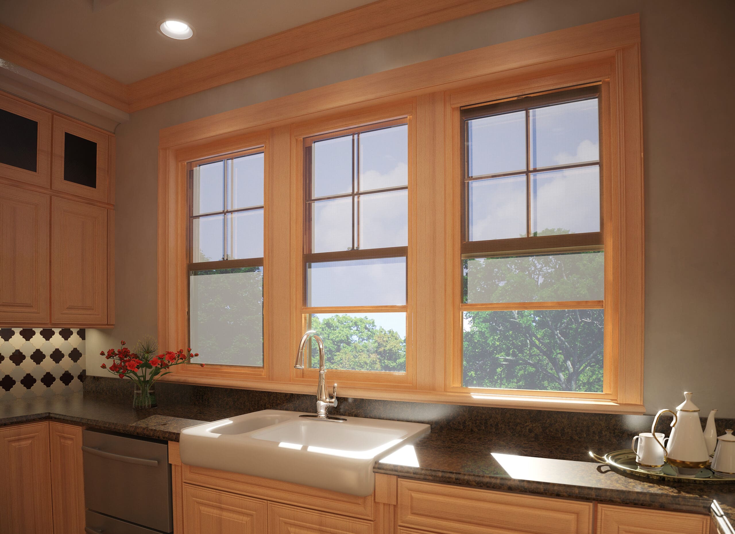 Phantom’s wood windows can be stained to match any wood finish, thereby allowing them to blend perfectly with your custom wood windows.