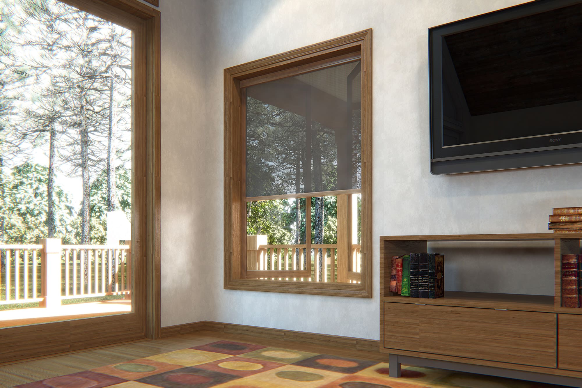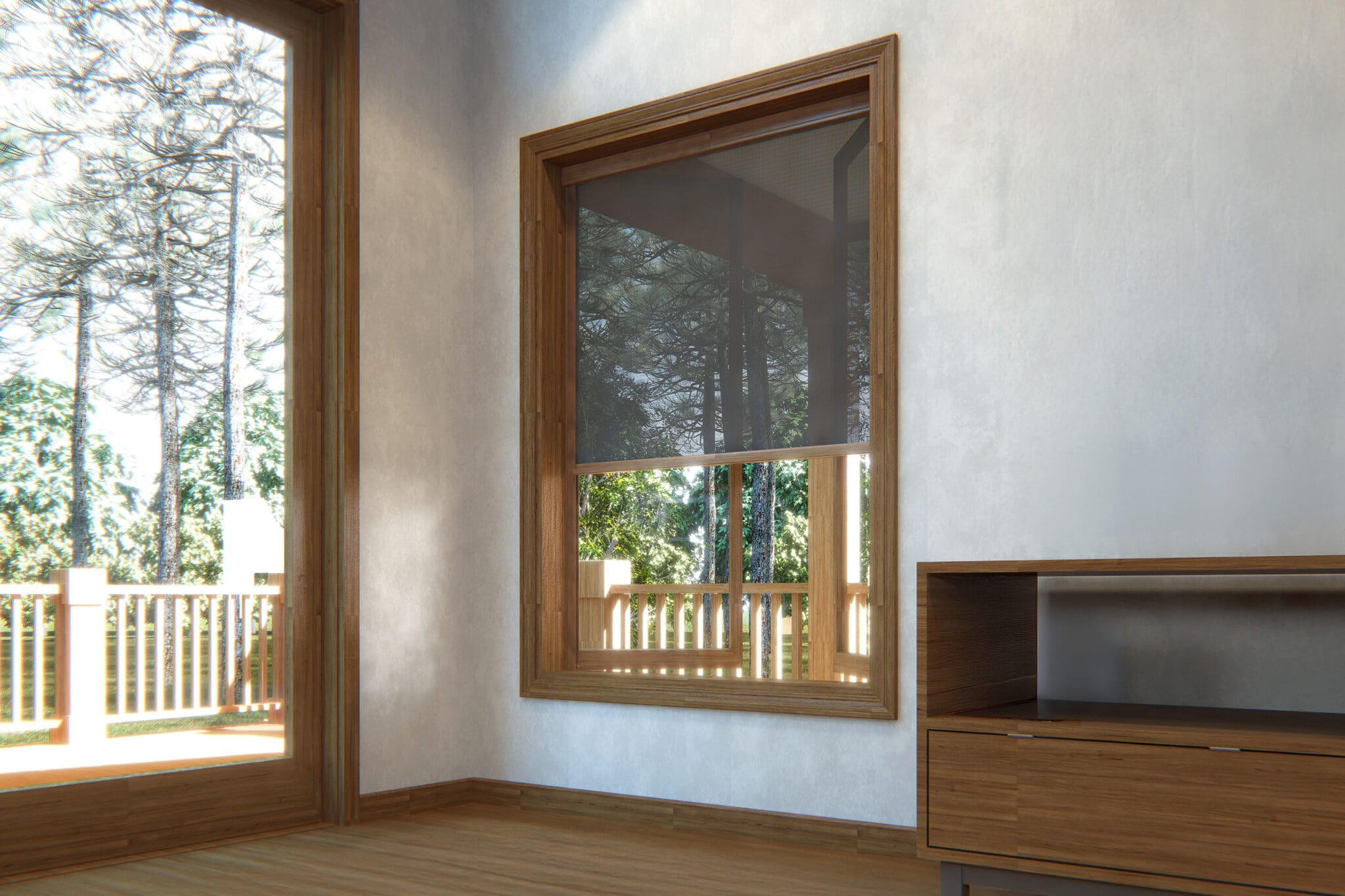 All the benefits of our retractable window screens in high quality wood to match your luxury wood windows.